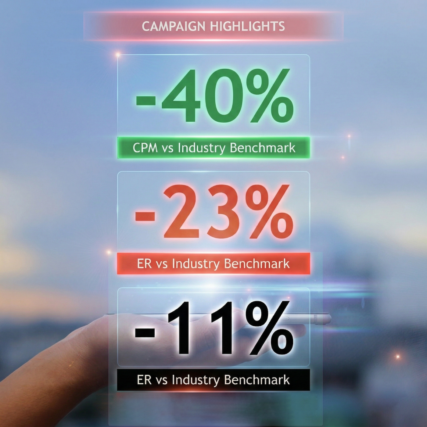The campaign delivered strong performance across all key metrics, outperforming category benchmarks and demonstrating scalable efficiency:
